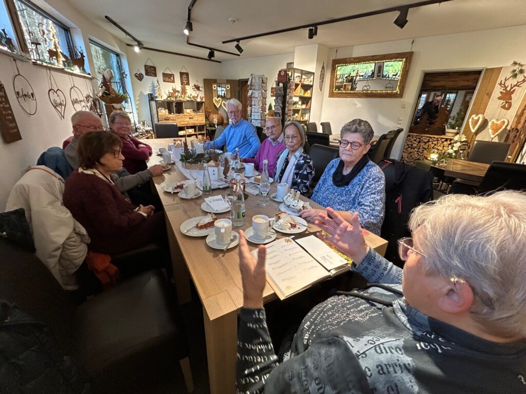 Ein kurzer Rückblick auf Vergangenes – auch politisches -, persönliche Gespräche, Gedanken zur Weihnachtszeit prägten unsere Advents-Kaffeerunde im Café Erle in Baiersbronn-Klosterreichenbach. Ein Rundgang durch die herrlich dekorierten Räumlichkeiten durfte natürlich nicht fehlen. Die eine oder andere Weihnachtsdeko und Weihnachtskarte wechselte die Besitzer und erfreuen nun an einem anderem Ort.