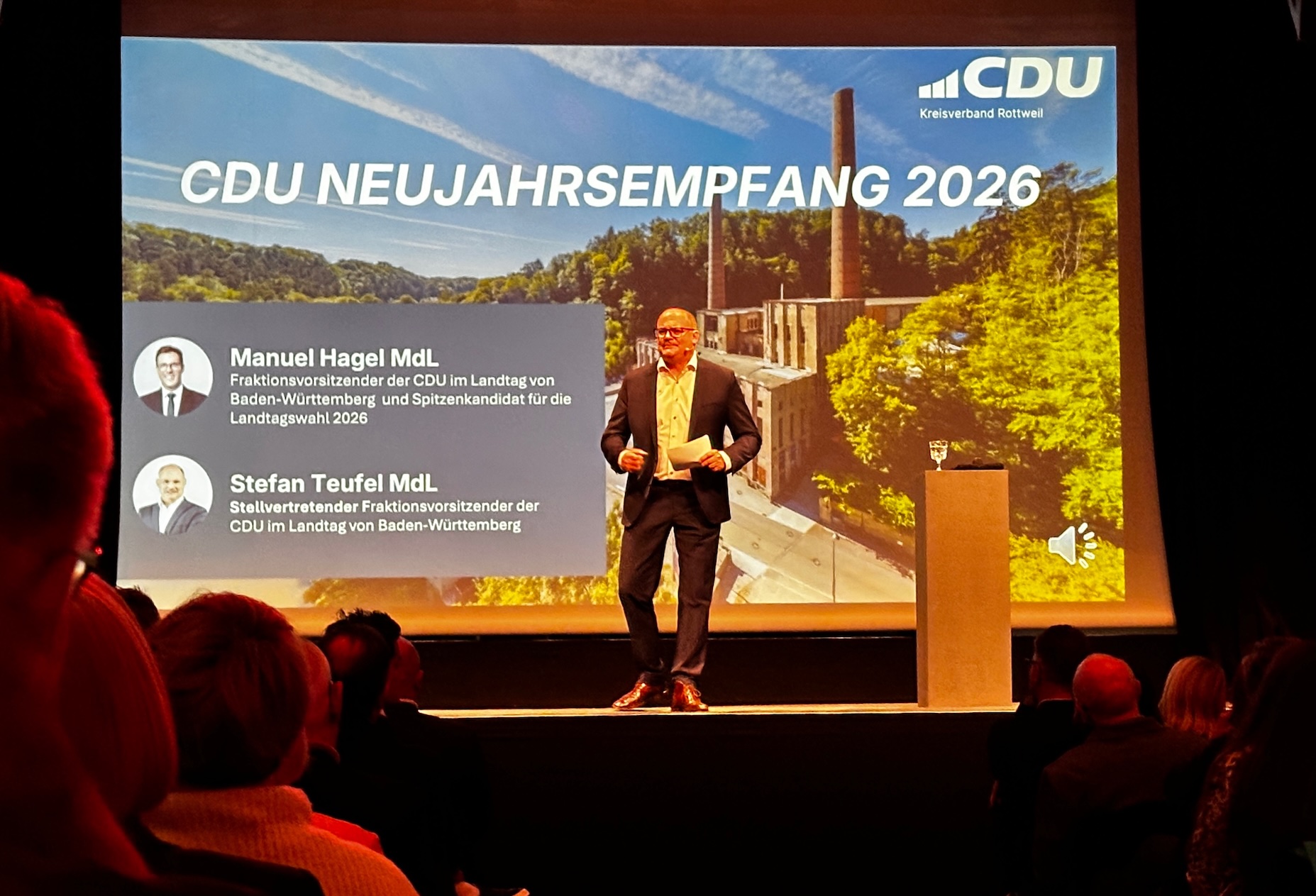 Startseite » Ein Highlight: Der Neujahrsempfang 2026 der CDU Rottweil im Kraftwerk Rottweil mit Manuel Hagel MdL und Stefan Teufel MdL