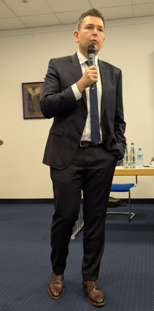 Zur „Stadtbild“-Aussage von Kanzler Friedrich Merz sagte er: „70 Prozent der Deutschen sehen das auch so.“ Und weiter: „Wir wollen Migration in den Arbeitsmarkt, nicht in die Sozialsysteme! Die CDU will, dass die, die zu uns kommen, nicht nur neben uns leben, sondern mit uns. Das ist eine Bringschuld. „Wir wollen“, so Vogt, „dass die, die in einem Land Schutz suchen, an die Regeln halten.“ Beim Thema Sicherheit wolle die CDU einen konsequenten Kurs fahren: „Mit Härte und Herz!“ Konkret heißt das: „Wir holen uns den öffentlichen Raum zurück“. Die CDU, so Vogt, möchte die Bahnhöfe sicherer machen. „Die CDU spricht von Videoschutz und nicht von -überwachung!“ Außerdem soll in jedem Zug im ersten Wagen eine Sicherheitskraft mitfahren.“