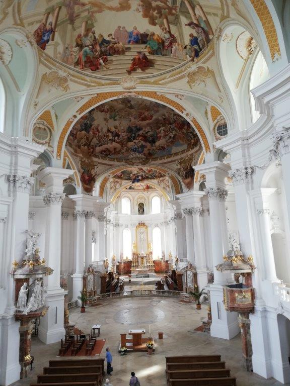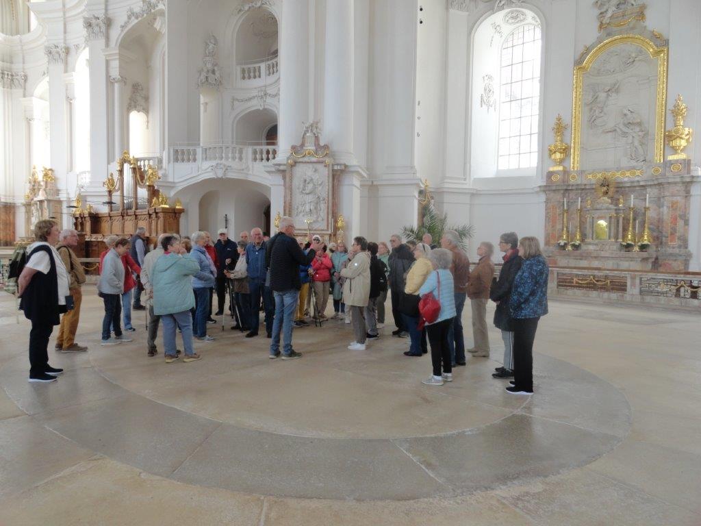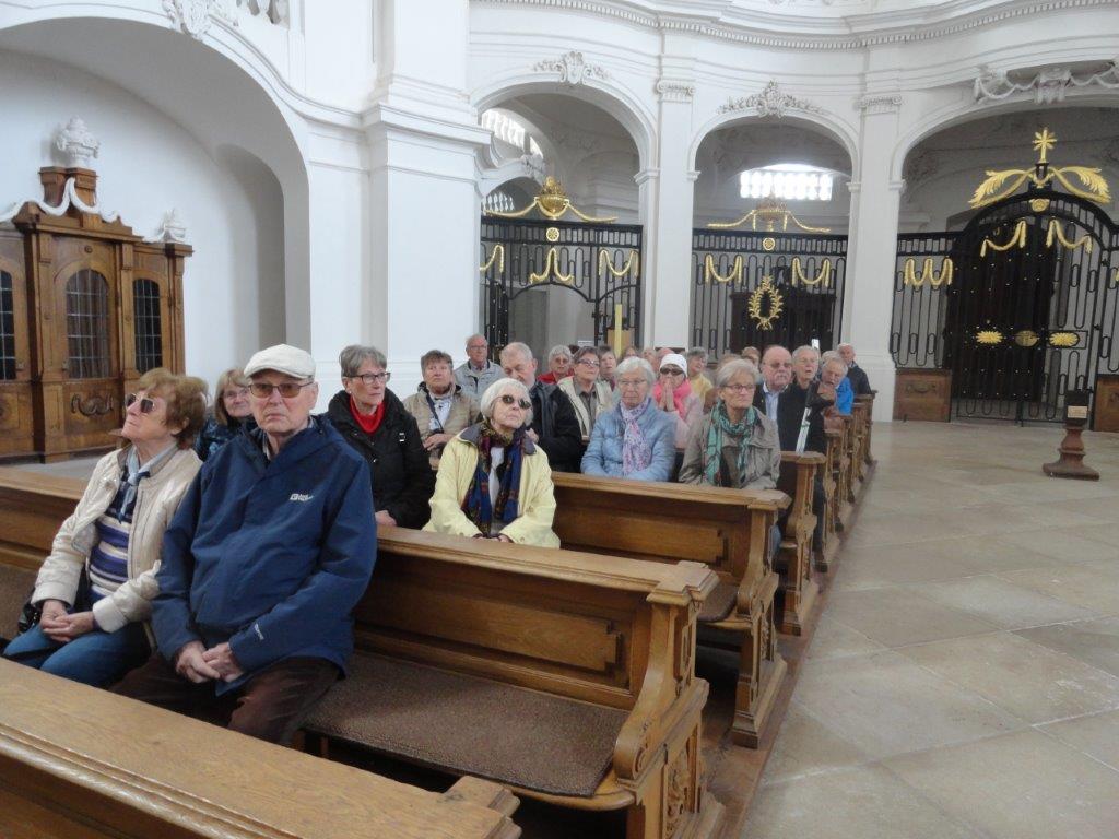 Bei der Kirchenführung haben wir die Entstehung mit geschichtlichem Hintergrund erfahren. Über Balthasar Neumann, der Architekt, der seinen letzten sakralen Kirchenbau, ein spätbarockes Lebenswerk, verwirklichte. Die Fresken von Martin Knoller  zeichnen sich aus durch die Schönheit der Farben, die Ausgewogenheit der Kompositionen und Einzelheiten. Der Blick von der Empore auf den weiten, hellen Raum war sehr beeindruckend. Eine interessante Führung über Wissenswertes zur Abteikirche und dem Benediktinerkloster.