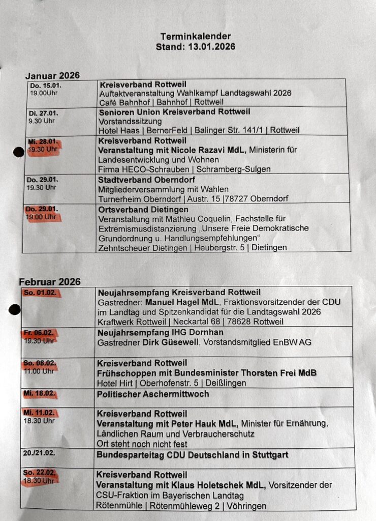 Wichtige Wahlkampftermine im Kreis Rottweil